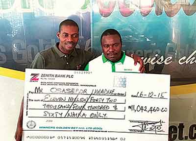 Fortune smiled on 40-year-old Osasebo Uwadiae, at the weekend, as he won eleven million, forty two thousand four hundred and sixty naira (N11, 042,460:00) on the coupon of Nigeria’s leading sports betting company, Winners Golden Bet.