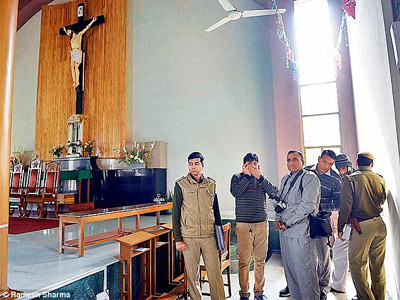 Police said several statues were damaged and their glass cases broken inside the grounds of St Mary’s church in the overnight attack in the tourist city of Agra, home to the famed Taj Mahal.