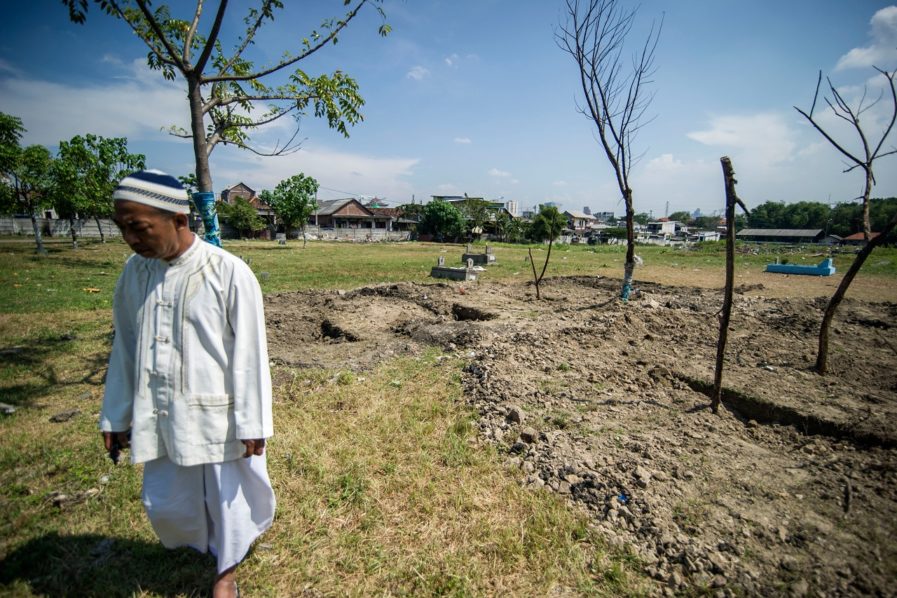 A dozen people were killed in the Surabaya attacks including a 15-year-old boy who lived in the neighbourhood where the graveyard is located.