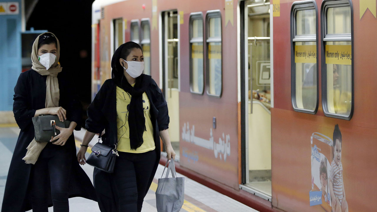 Iranian women wearing face masks leave a train in a metro station in the capital Tehran on June 10 2020 amid the coronavirus Covid-19 pandemic crisis. – Nearly one in five Iranians may have been infected with the novel coronavirus since the country’s outbreak started in February, a health official said yesterday. The figure represents 18.75 percent of the more than 80 million population of Iran, which on June 9 announced another 74 deaths from the coronavirus. (Photo by STRINGER / AFP)