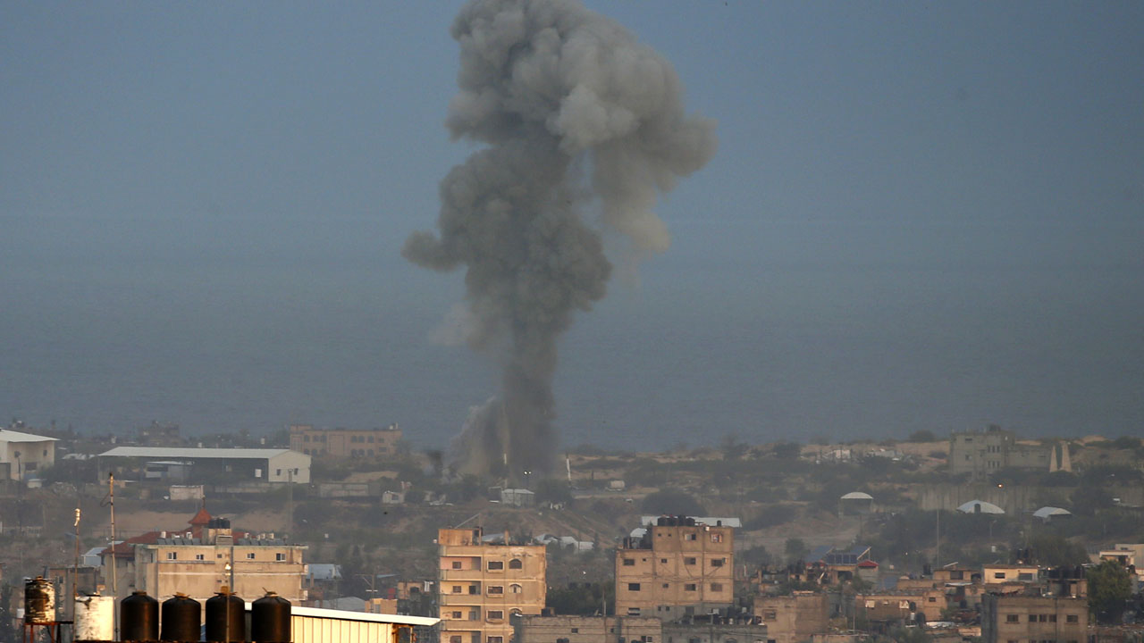 Smoke billows following an Israeli air strike around the southern Gaza Strip city of Rafah on October 17, 2018. - Israel launched raids against targets in the Gaza strip today in response to rocket fire from the Palestinian territory that caused damage in a southern city, the Israeli army said. (Photo by SAID KHATIB / AFP)