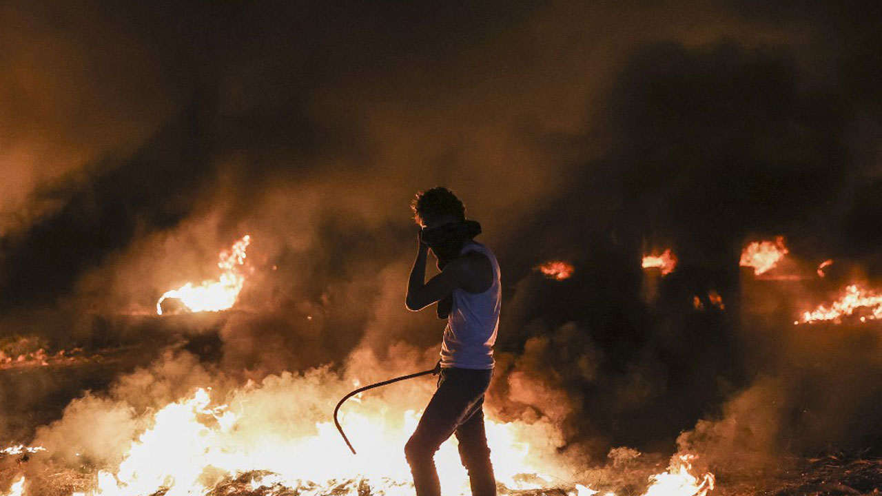 Protests erupted later in the day, with the Israeli army firing tear gas and stun grenades as Palestinians burned tyres on the border between Gaza and Israel, an AFP reporter said.