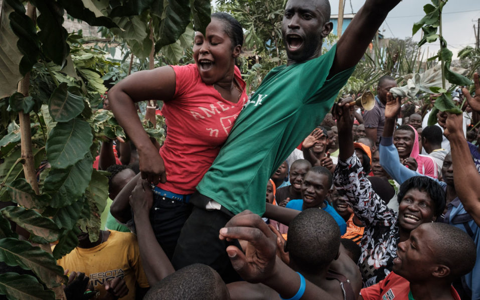 “Baba! Baba!” the men cried, screaming out the nickname of Kenya’s opposition leader Raila Odinga as they rolled about in the middle of a road, clutching a campaign poster with his picture on it.