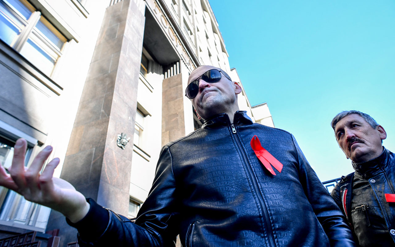 Russian opposition leader Sergei Udaltsov (L) gestures as he speaks during a rally against the pension reform in front of the State Duma, the lower house of parliament, in Moscow on September 26, 2018. The Russian parliament on Wednesday unanimously approved President Vladimir Putin's amendments of a hugely unpopular pension reform that has led to a rare outburst of public anger in the country. / AFP PHOTO / Yuri KADOBNOV