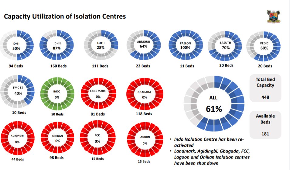 Other COVID-19 care centres that are still shut down are Landmark, Gbagada, Agidingbi, Onikan, First Cardiology Consultants Hospital and Lagoon Hospital Centre.