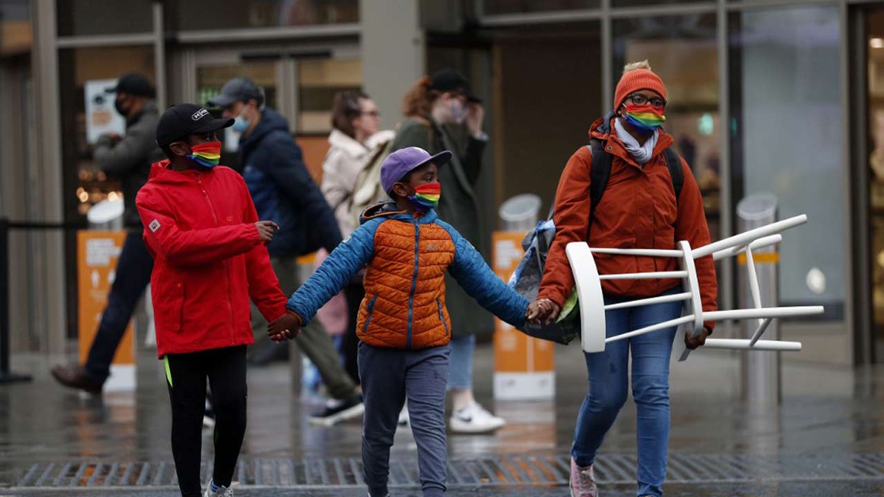 On Thursday night, young people took to the streets in fancy dress and drank alcohol in large groups before a ban on alcohol sales in shops came into force at 2100 GMT.