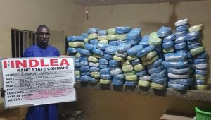 “In Kano, a drug dealer Lawal Adamu, 31, was arrested along Zaria-Kano road, Kwanar Dangora, with 203 blocks of cannabis weighing 136kg.
