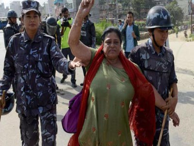 The protesters were from Nepal’s federation of indigenous nationalities, which called a nationwide strike against the borders of new provinces proposed in the draft constitution.