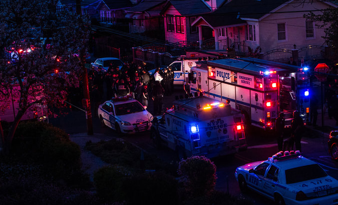 A police officer in plain clothes was shot in the left cheek in Queens Village on Saturday. After a 90-minute search, officials said, Demetrius Blackwell, 35, was taken into custody. Credit Uli Seit for The New York Times