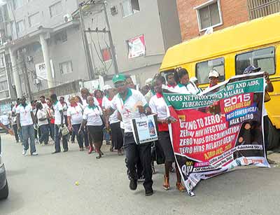 Members of Network of People Living with HIV and AIDS in Nigeria (NEPWHAN), Lagos Chapter during their Walk to Zero at Ikeja, Lagos state PHOTO: TAYO OREDOLA