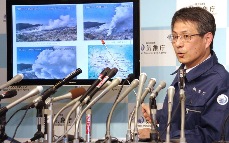In a televised press conference, he warned residents in the area to stay away from the mountain, part of the Mount Kirishima group of volcanoes, as major ash deposits spread from the crater.