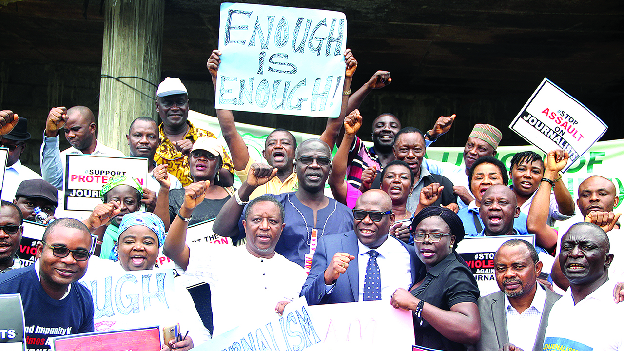 In Owerri, Imo State, Chairman of NUJ Caretaker Committee, Francis Ebunugwo and National Trustee, Fidel Onyeneke, as well as immediate past chairman of the council, Innocent Igwe led journalists in the protest around the NUJ Secretariat.