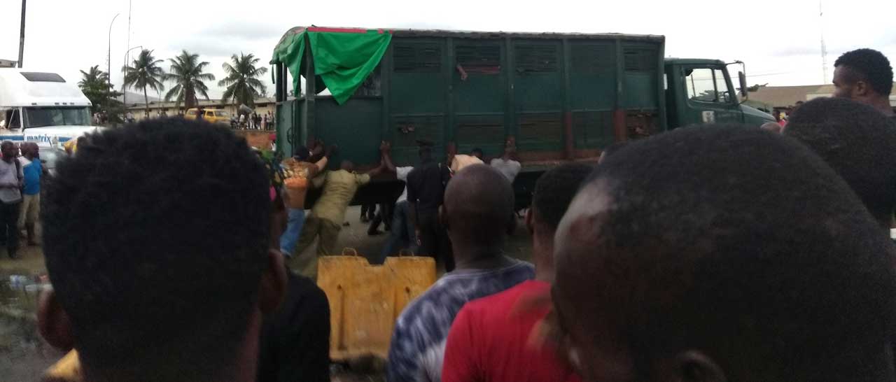 The scene later became chaotic as the crowd of onlookers moved to sympathy for the inmates still locked in the Black Maria, began to give them money, drinks and snacks. It was double jeopardy for the prison wardens as they tried relentlessly to control the crowd milling round the truck while also seeking for help to push the truck out of the highway.