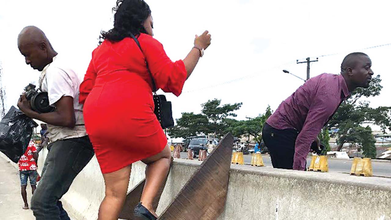 Pedestrians, road users struggle with high median on Oshodi-Apapa expressway
