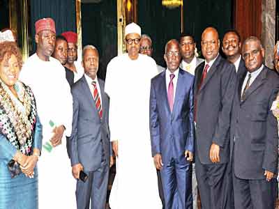 General Overseer (GO), Reedemed Christian Church of God (RCCG), Pastor Enoch Adeboye (left); his deputy, Pastor Joseph Abiona; Vice President, Prof. Yemi Osinbajo and wife, Dolapo; during a special Holy Ghost service at the Redemption Camp in Ogun State.President Muhammadu Buhari (middle) and Vice President Yemi Osinbajo in a group photograph with officials of Ministry of Foreign Affairs after a briefing with the President at the Presidential Villa, Abuja. PHOTO: ICE/BJO/NAN
