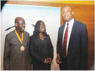Rear Admiral Ibe Enwo (left), Acting Chinese Consular in Lagos, Li Young and Flag Officer Commanding Western Naval Command, Rear Admiral Jonah Ango; at a regimented party cocktail (RPC) for some Chinese naval personnel on diplomatic visit to Nigeria. PHOTO: ODITA SUNDAYPresident, Nigerian Association of Petroleum Explorationists (NAPE), Chikwe Edoziem; Head, Corporate Banking, Skye Bank Plc., Mrs. Funmilola Oketogun and President-elect, NAPE, Nosa Omorodion; at the NAPE August Technical/Business Luncheon sponsored by Skye Bank in Lagos.