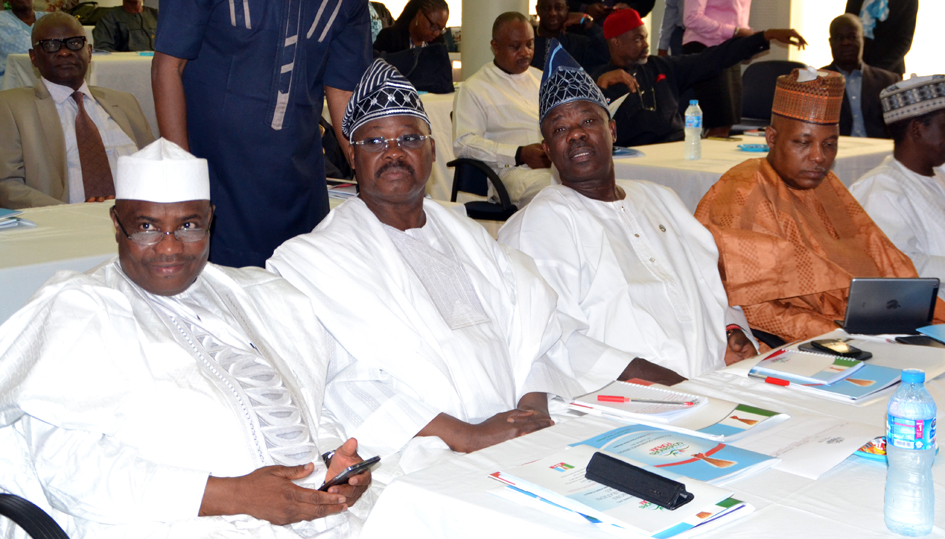 Plateau state Governor Elect, Mr. Simon Lalong, APC Chieftain, Chief Audu Ogbeh, Senator Chris Ngige and Lagos state Governor Elect, Mr. Akinwumi Ambode, during the Retreat of APC Governors Elect in Abuja