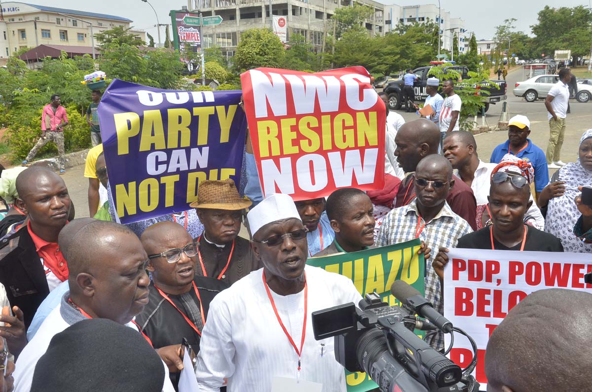 Today, members of Peoples Democratic Party( PDP ) protested, demanding the resignation of the Party National Working committee in Abuja. View images of the protest below