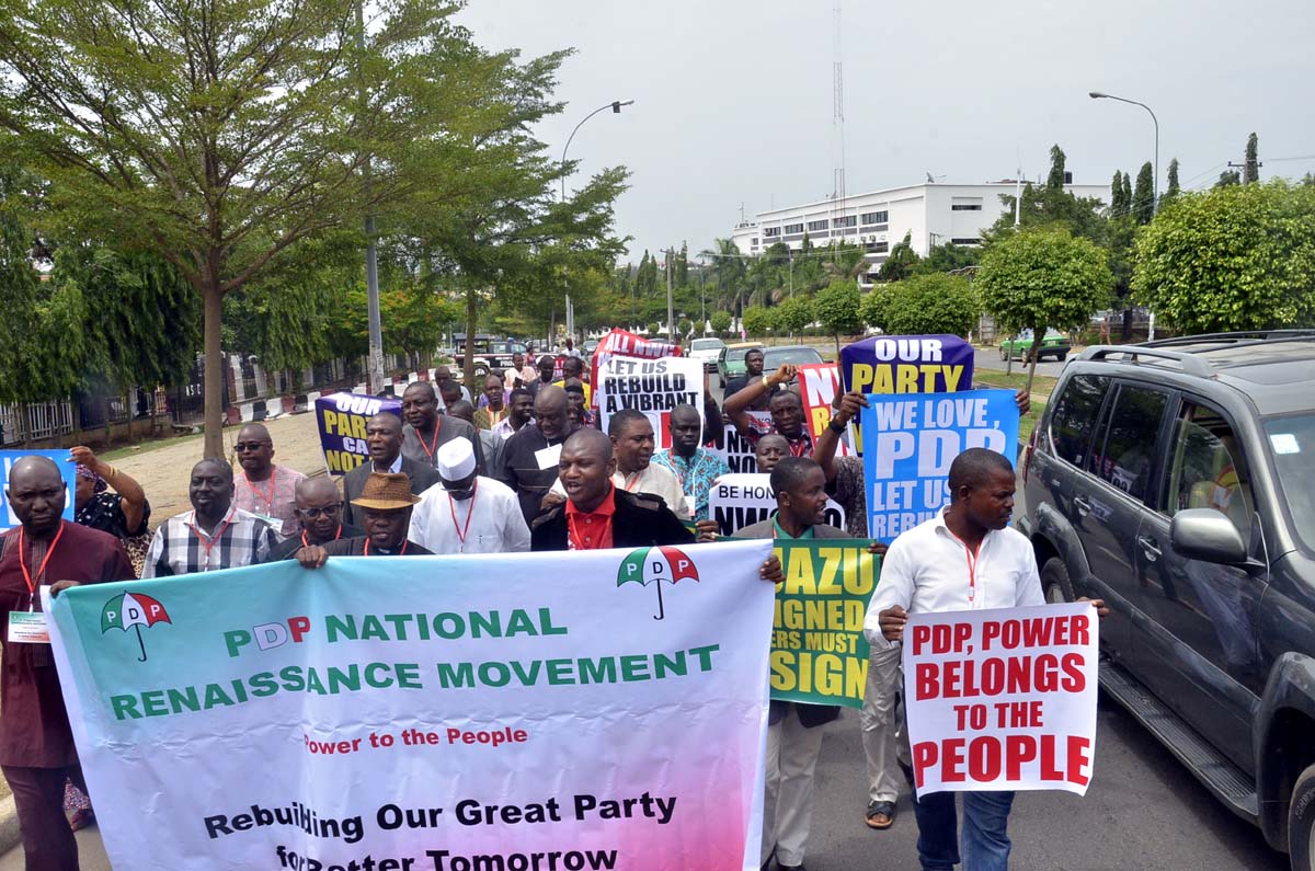 [PHOTOS] PDP Members Protest in Abuja