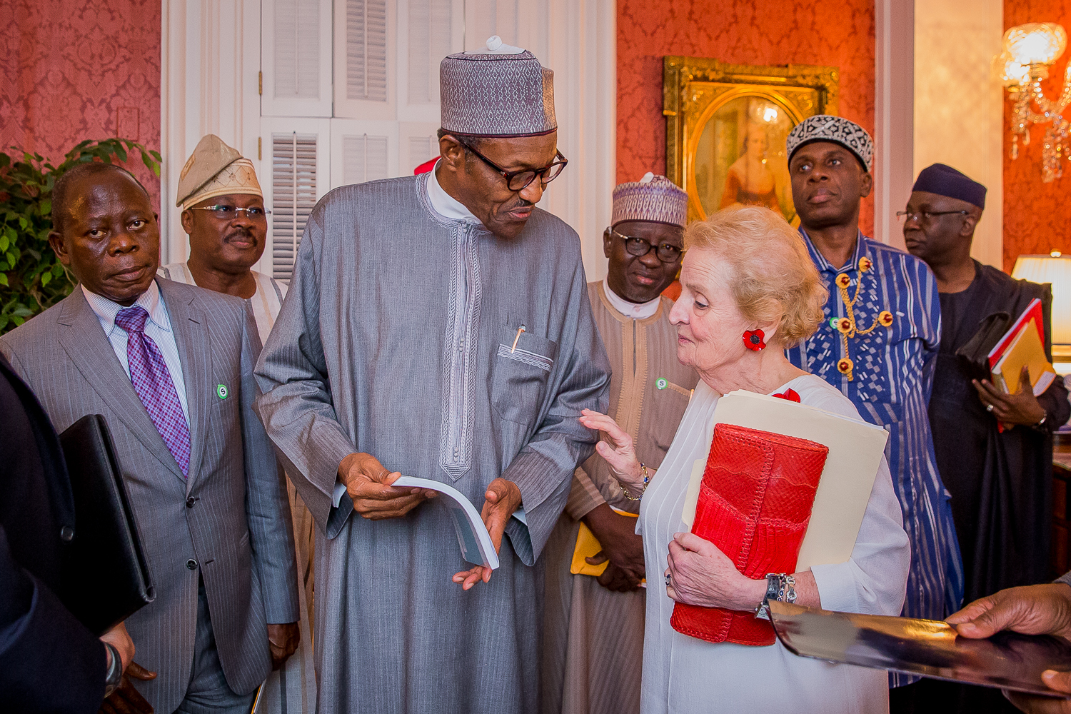 President Muhammadu Buhari played hosts to former United States Secretary of State, Madeleine Albright. Albright is the first woman to have held that position ahead of Hillary Clinton. Albright is also very influential in the US foreign relations circle.