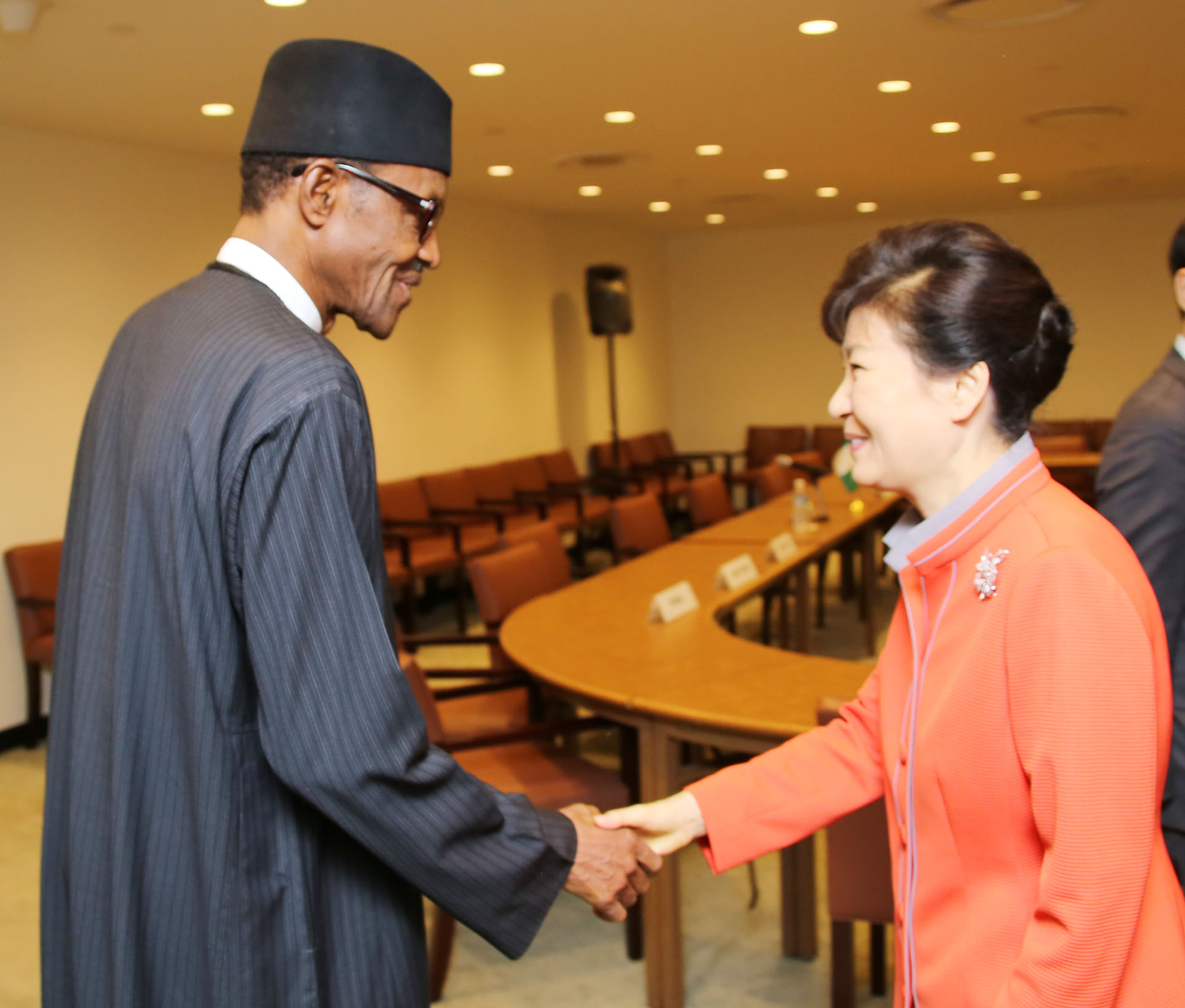President Muhammadu Buhari met the President, Republic of Korea, Her Excellency, Mrs Geun-Hye Park at a bilateral meeting during the 70th Session of the UN General Assembly in New York, on September 27 2015.