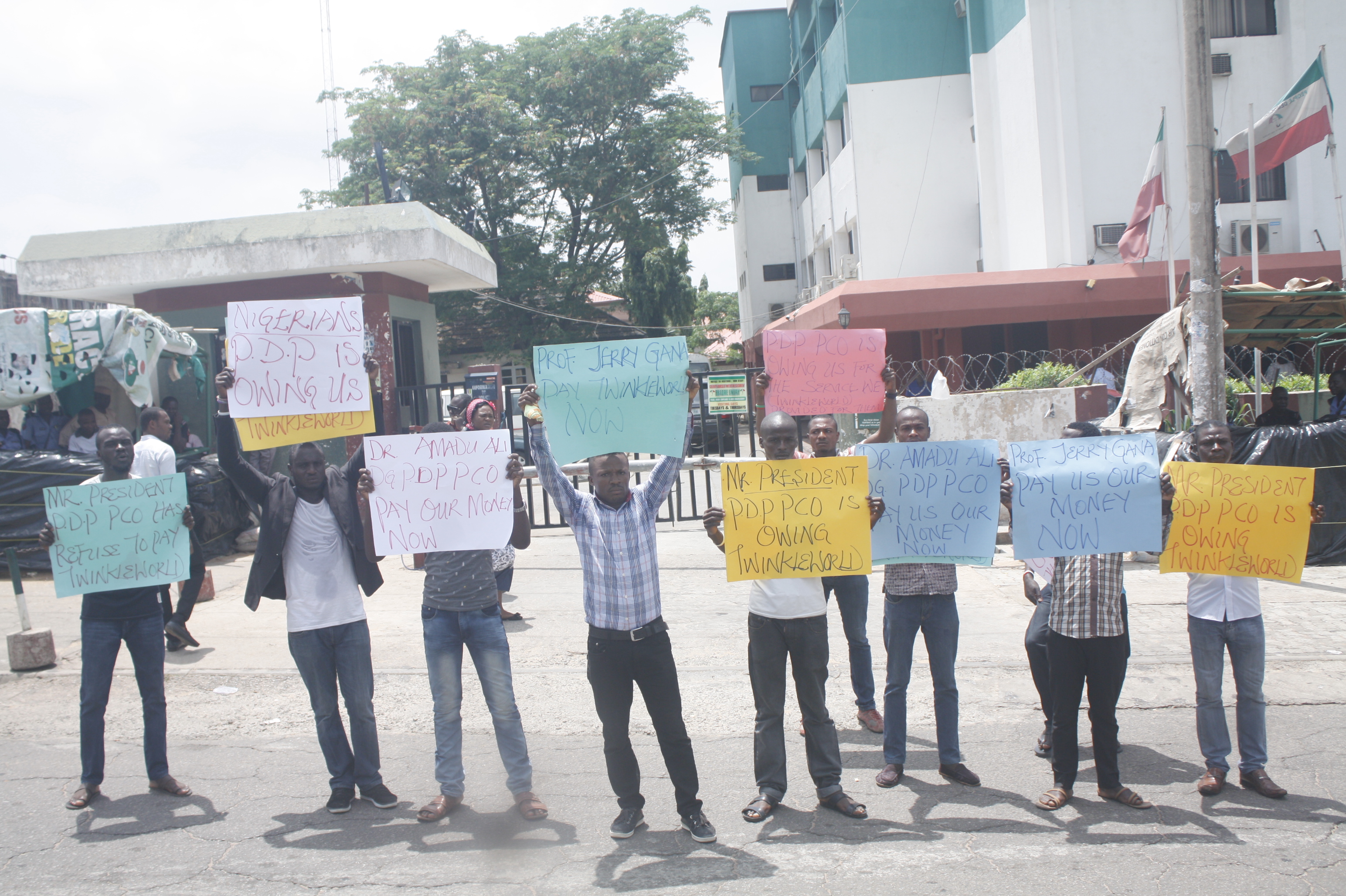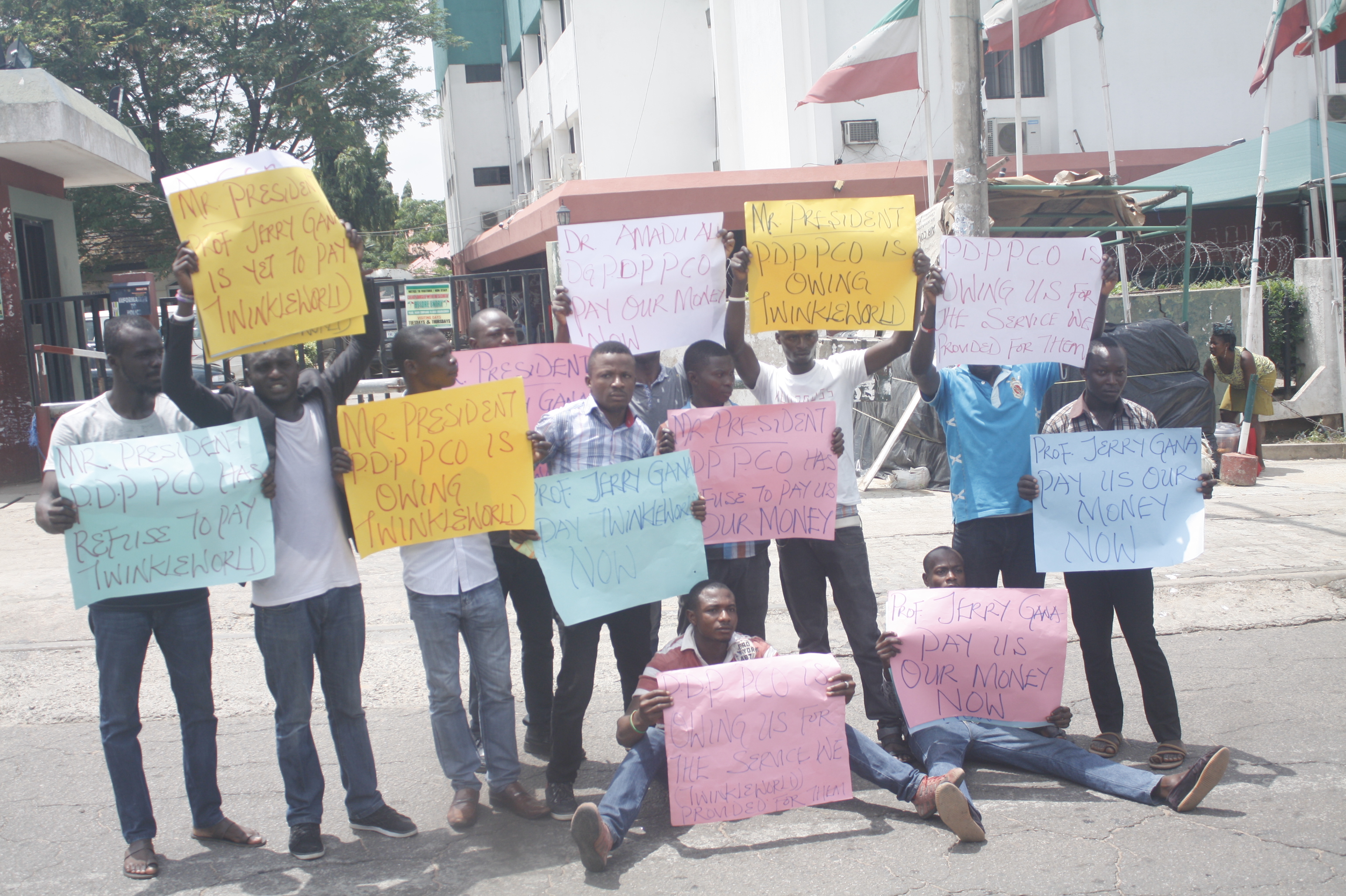 Staff of Twinkle world company Protesting against People Democratic Party (PDP) for owing them during the PDP Presidential Campaign over the Weekend in Abuja.