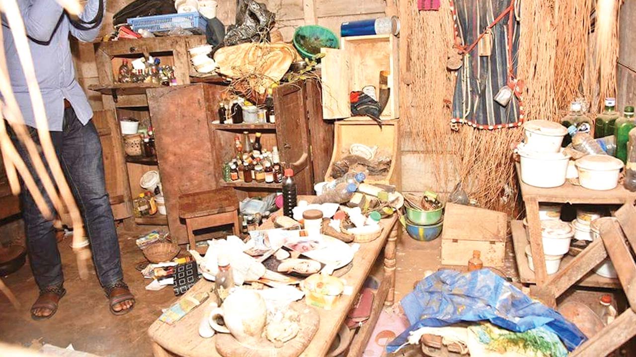 Adebayo operated in a wooden kiosk situated in his family compound where he lives with his wife and mother. The kiosks was ridden with varying fettish accessories including figurines, rocks, bottles of mixture, cowry-embedded apron, pictures of white men and women, black pots, goats, chickens among others.