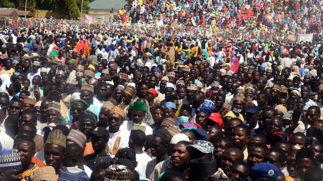 Muslim faithful celebrate Eid Maulud at Kaduna township stadium in Kaduna…yesterday.