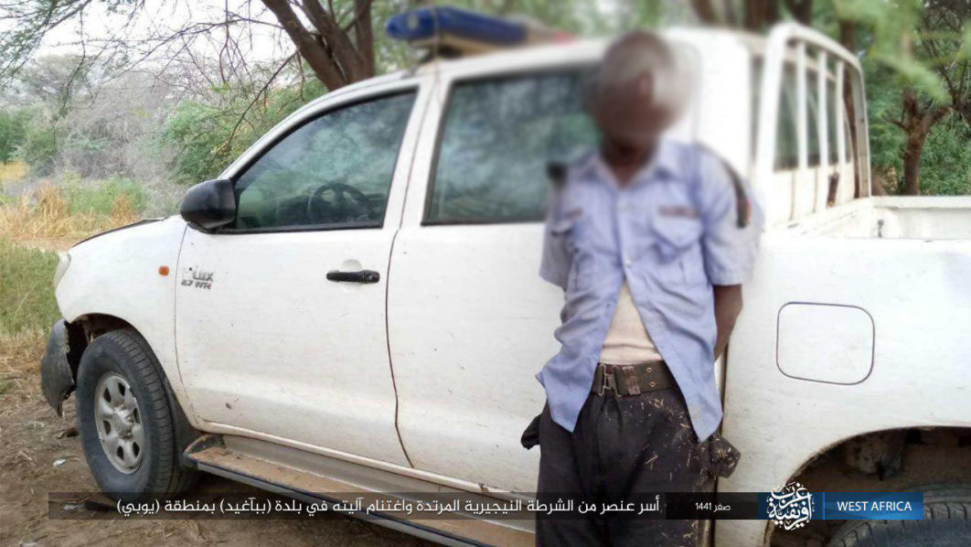 The Islamic State-backed insurgent group said on its Amaq news agency that the policeman was captured in Babban Gida, Yobe State on Saturday.