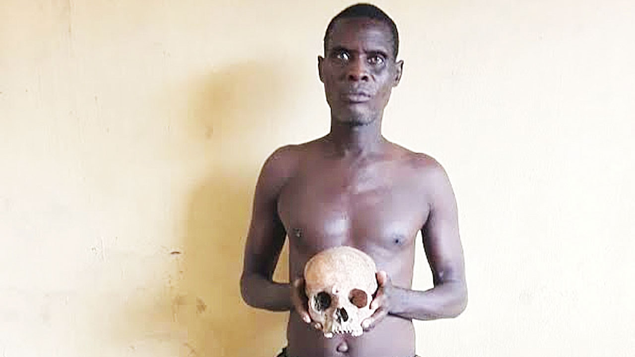 Tosume, who confessed to the crime, said he sells fresh skulls for N1 million. Famous-Cole says investigations are ongoing to ascertain where he got the human part.