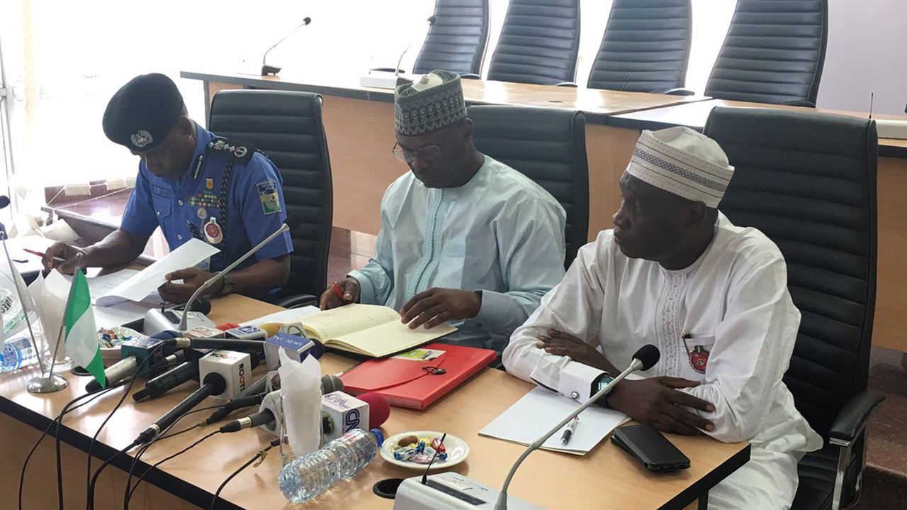 Inspector General of Police, Adamu at the Meeting with Inter Agency Consultative Committee on Election. Photo: TWITTER/INECNIGERIA