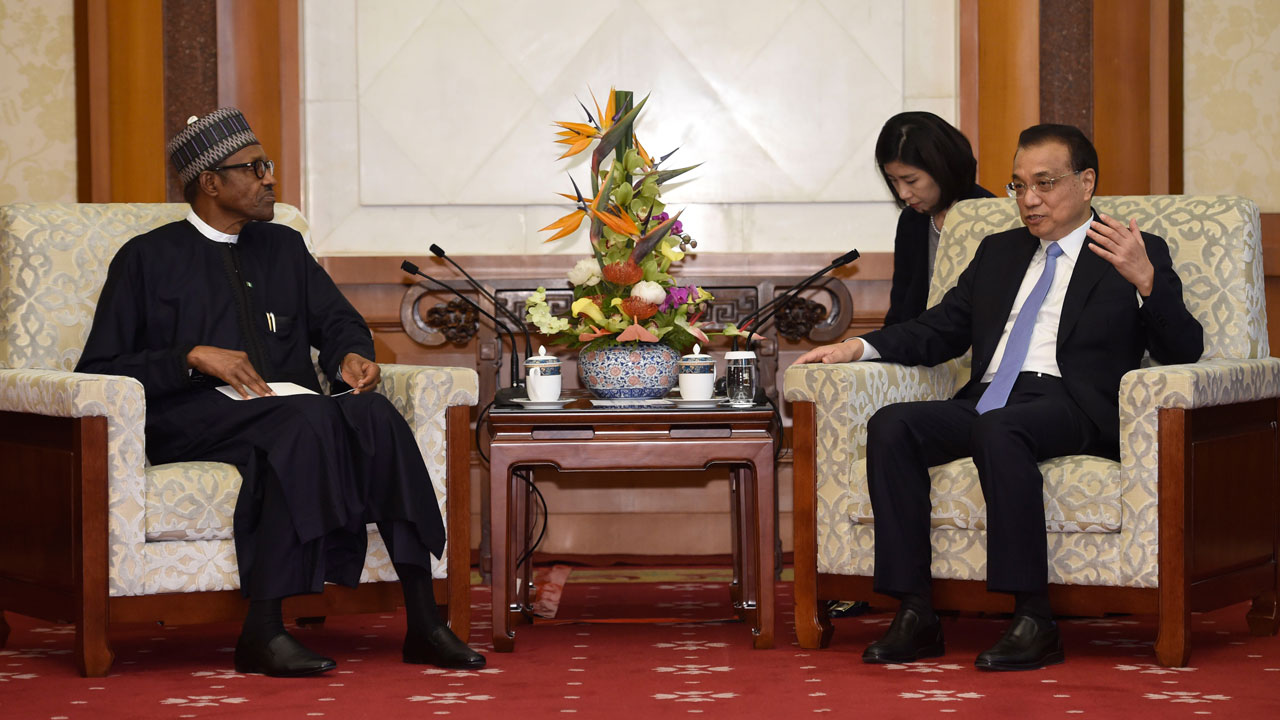 China’s Premier Li Keqiang (R) talks to Nigeria’s President Muhammadu Buhari during their meeting at the Diaoyutai State Guesthouse in Beijing on September 5, 2018. Parker Song / POOL / AFP