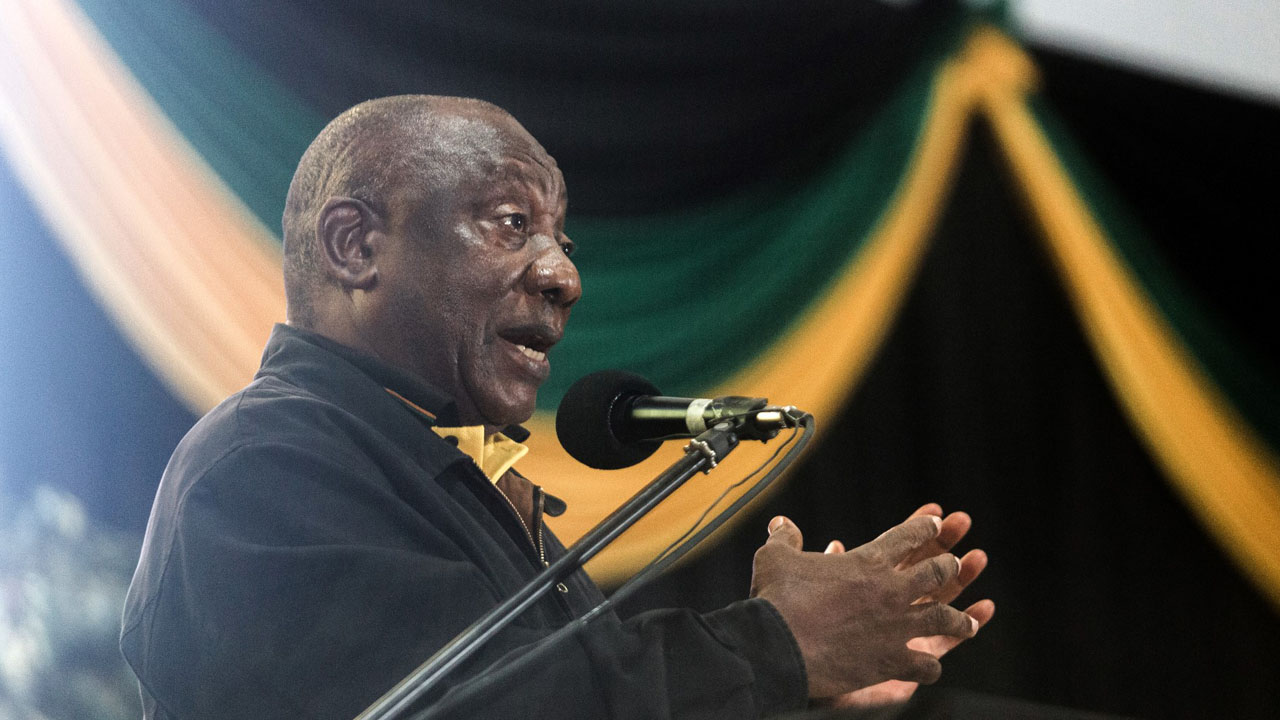 South Africa President Cyril Ramaphosa addresses delegates at the Olive Convention Centre in Durban, on July 24, 2022. - The 9th annual Kwazlu-Natal Provincial conference elected pro Zuma leaders, which is seen as a setback for South African President Cyril Ramaphosa. Protesters sang and chanted slogans calling for the resignation of the South African President Cyril Ramaphosa who is due to address the 1,700 delegates at the closing of the conference. (Photo by Rajesh JANTILAL / AFP)