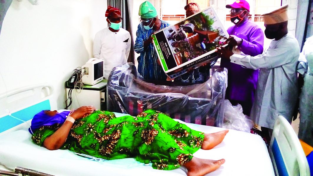 The baby, a male, was delivered of by Mrs. Moshood Salamot at 12:09 a.m. on Friday. A baby stroller and cheque were presented to the mother of the baby.