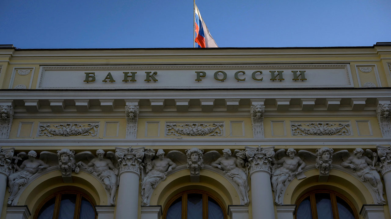 A view of the Russian Central Bank headquarters in downtown Moscow on February 28, 2022. - Russia's central bank announced on February 28, 2022 it was raising its key interest rate to 20 percent from 9.5 percent as the West pummelled the country with sanctions over Moscow's invasion of Ukraine. (Photo by Natalia KOLESNIKOVA / AFP)