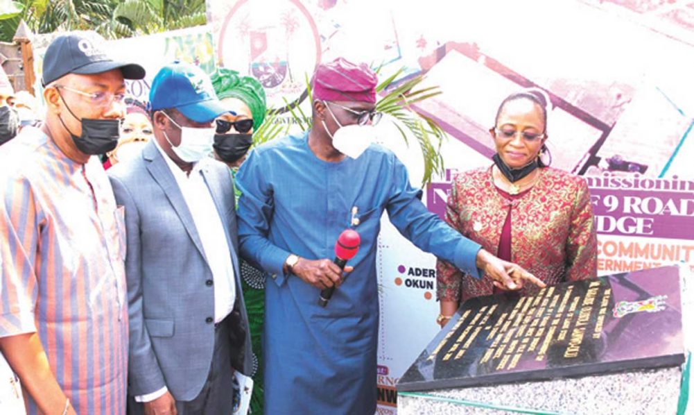 The roads commissioned are Aderemi Akeju Street with deck on pile bridge, Okun Street, Femi Kufo Street, Brown Street, Adegbenro, Ganiyat Dawodu, Yetunde Brown, Anipole and Sosanya streets.