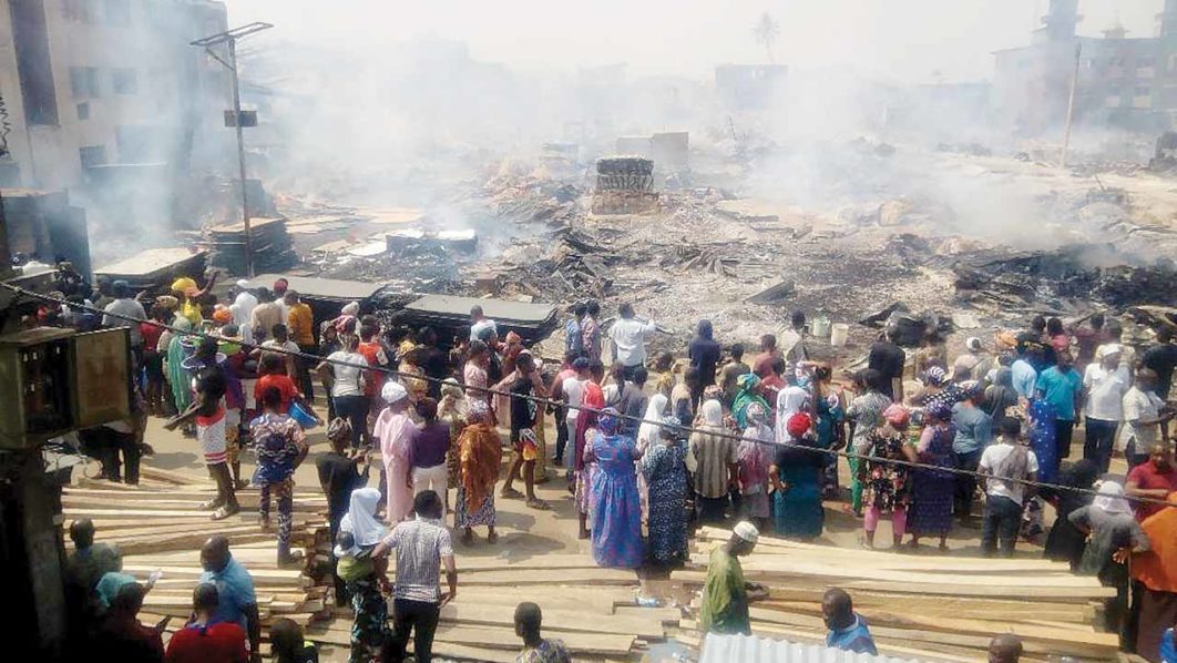 In the wee hours of Saturday, fire had razed properties at Amu market in Mushin, which saw a lot of residents homeless and helpless. It was reported that more than a dozen of traders slumped and were rushed to the hospital on receiving the news that the market had been razed down to rubbles. The fire lasted for over 12 hours before it could be put off with an estimated N10 billion worth of property going up in flames.