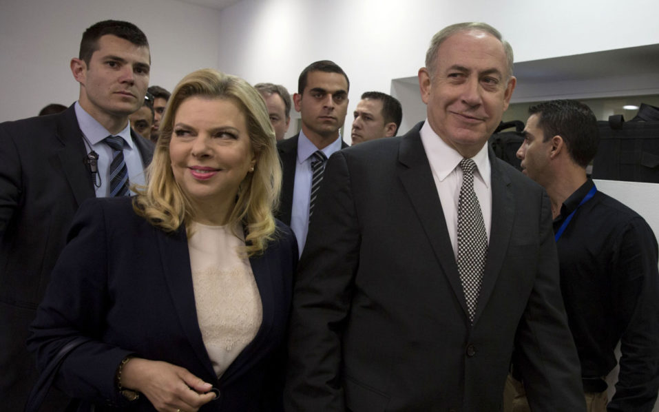 Israeli public radio said Sara Netanyahu was interrogated at National Fraud Squad headquarters near Tel Aviv over allegations she used public money for personal housekeeping expenses at the couple’s official and private residences.