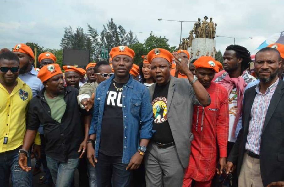 AAC presidential candidate Omoyele Sowore leading a group of protesters over killing of one by SARS in Lagos