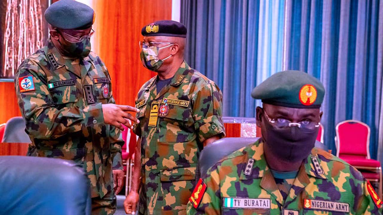 The nation’s service chiefs in attendance were the Chief of Defence Staff, General Gabriel Olonisakin; Chief of Army Staff, Lt. Gen. Tukur Buratai; Chief of Naval Staff, Vice Admiral Ibok Ekwe Ibas; Chief of Air Staff, Air Marshall Sadique Abubakar; Inspector-General of Police, Mohammed Adamu; Director-General of the National Intelligence Agency (NIA), Ahmed Rafa’i Abubakar; and the Director-General of the Directorate of State Services (DSS), Yusuf Magaji Bichi.