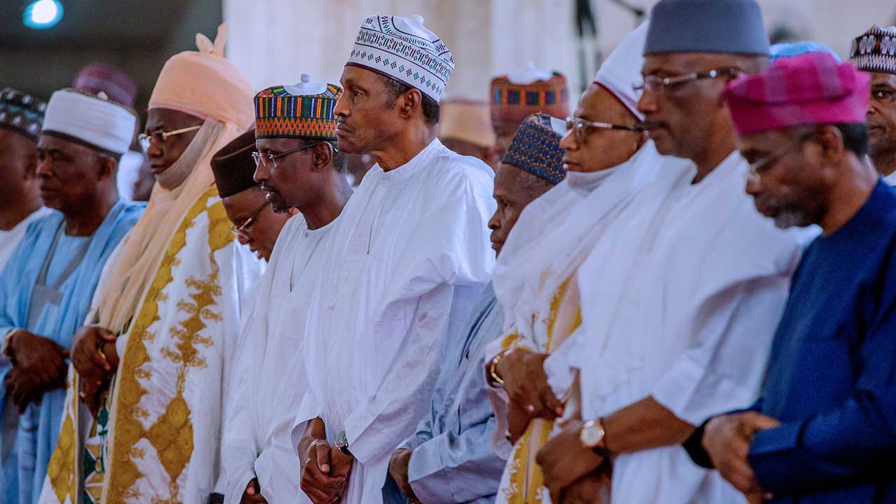 Present at the mosque were Governor Nasir El-Rufai of Kaduna state, acting Chief Justice of Nigeria (CJN), Tanko Mohammed Etsu Nupe, Yahaya Abubakar, traditional rulers, ministers, lawmakers and security chiefs.