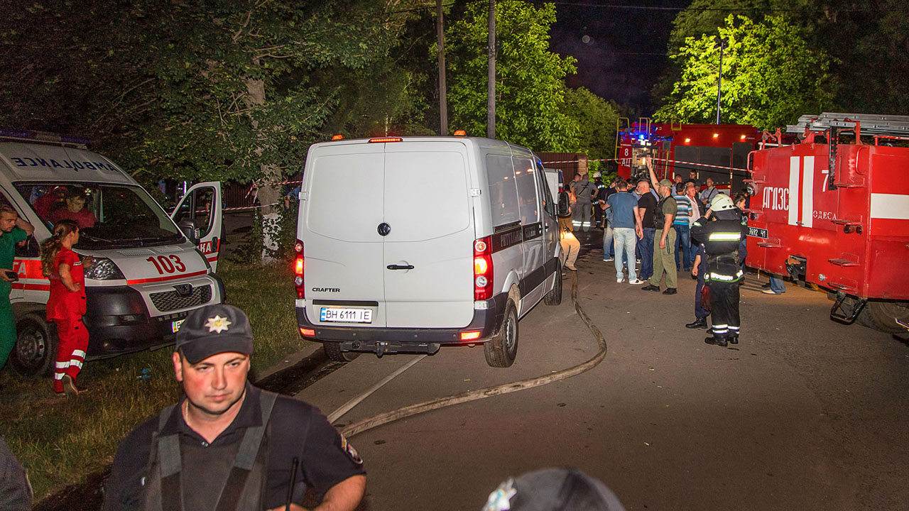 EDITORS NOTE: Graphic content / Emergency doctors, police officers and firefighters stand near the site of a burnt psychiatric hospital in Odessa on June 10, 2019. – Six people died when fire swept through a psychiatric hospital in the Ukrainian city of Odessa, authorities said June 11. The fire erupted late Monday evening in the one-storey building, Ukraine’s Emergency Service said in a statement. The cause was not immediately clear. (Photo by Alexander GIMANOV / AFP)Six people died when fire swept through a psychiatric hospital in the Ukrainian city of Odessa, authorities said Tuesday.