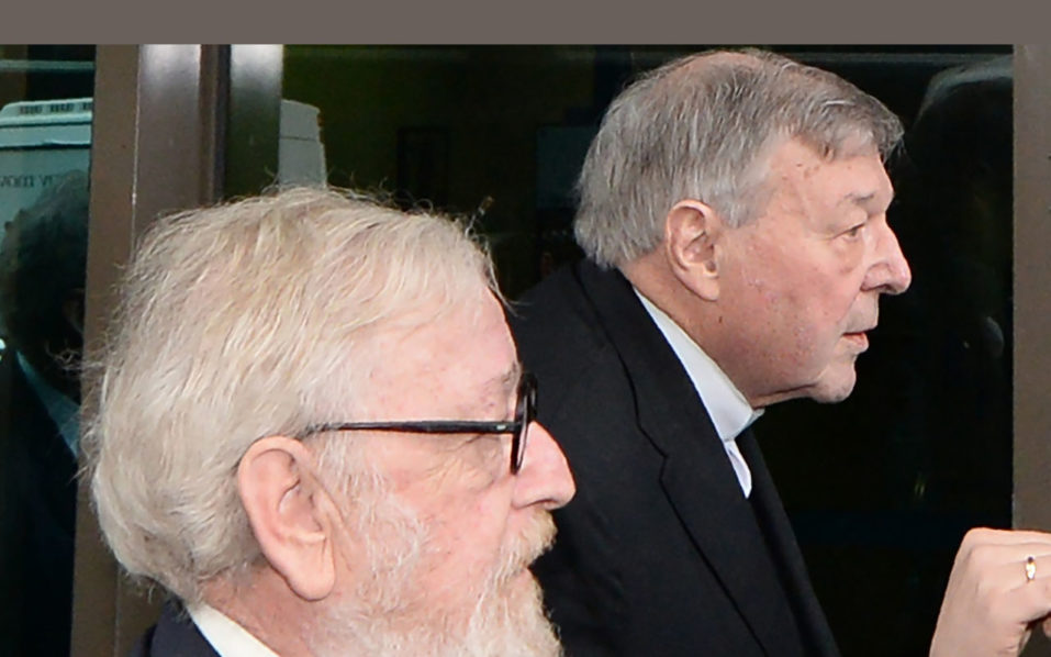 Cardinal George Pell (R) arrives for a committal hearing relating to charges of historical sex abuse at the Melbourne Magistrates Court on October 6, 2017. A frail-looking Vatican finance chief Cardinal George Pell, a top advisor to Pope Francis, arrived for a second court appearance on October 6 as he fights sexual abuse charges that he strongly denies. He is accused of multiple historical sexual offences, meaning that the alleged crimes occurred long ago. / AFP PHOTO / Mal Fairclough