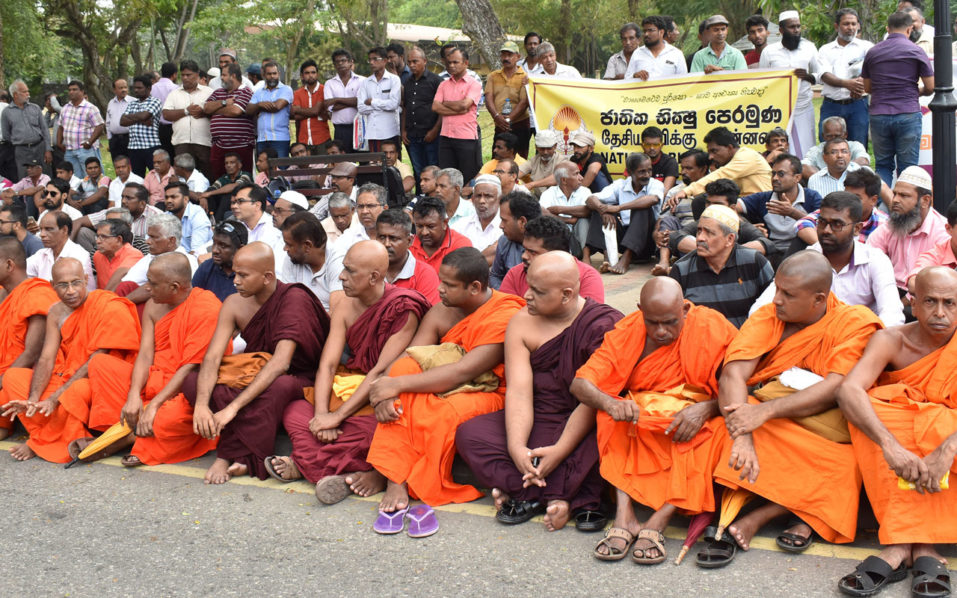 The National Bhikku Front said they organised the silent protest against what they called “communal clashes destroying national unity”.,