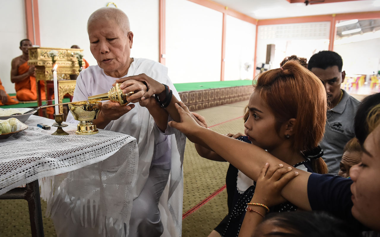 The family has been sleeping at the temple where Natalie’s coffin lies since her death to attend daily funeral prayers chanted by Buddhist monks and nuns.