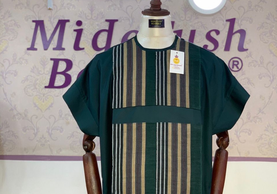A unisex garment which is loose-fitting and sewn from colourful African-inspired cotton prints or solid colour fabrics, often with patch pockets and embroidery at the neckline. In the celebration of identity through fashion, this symbolic garment has become the trendiest casual/street wear for people of African descent worldwide and is now enjoyed by a much wider audience than ever before and, this being the case, it’s been recreated into visually attractive and sophisticated designs. A classic example is Midetush Bespoke’s made-to-wear two-piece unisex Dashiki set.