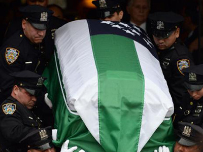 New York Mayor Bill de Blasio and police commissioner Bill Bratton were to lead the mourners at the funeral at St James Church in the town of Seaford, 40 miles (64 kilometers) east of Manhattan.