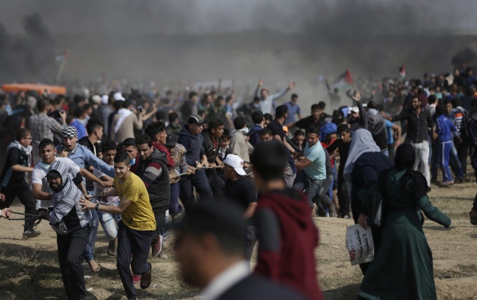 Fifty people were injured by gunfire or teargas inhalation, Gaza’s health ministry said.