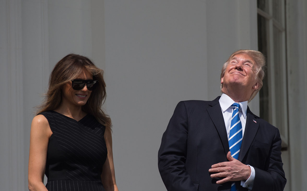 In the US capital, where 81 percent totality occurred, Donald Trump watched the partial eclipse from the White House with his wife Melania and son Barron — although the president appeared to have missed the memo on eclipse do’s and don’ts.