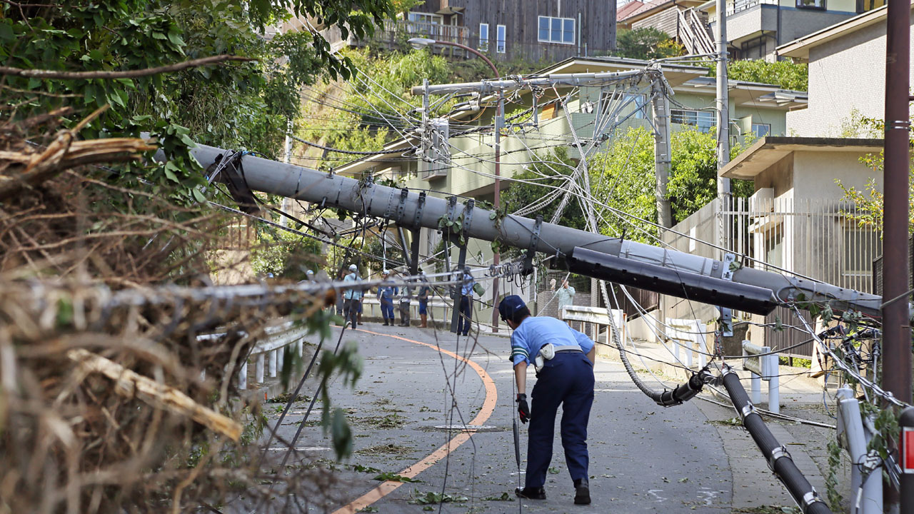 The strong winds downed trees and power lines. Nearly 760,000 households were still without electricity in the Tokyo area on Monday evening.